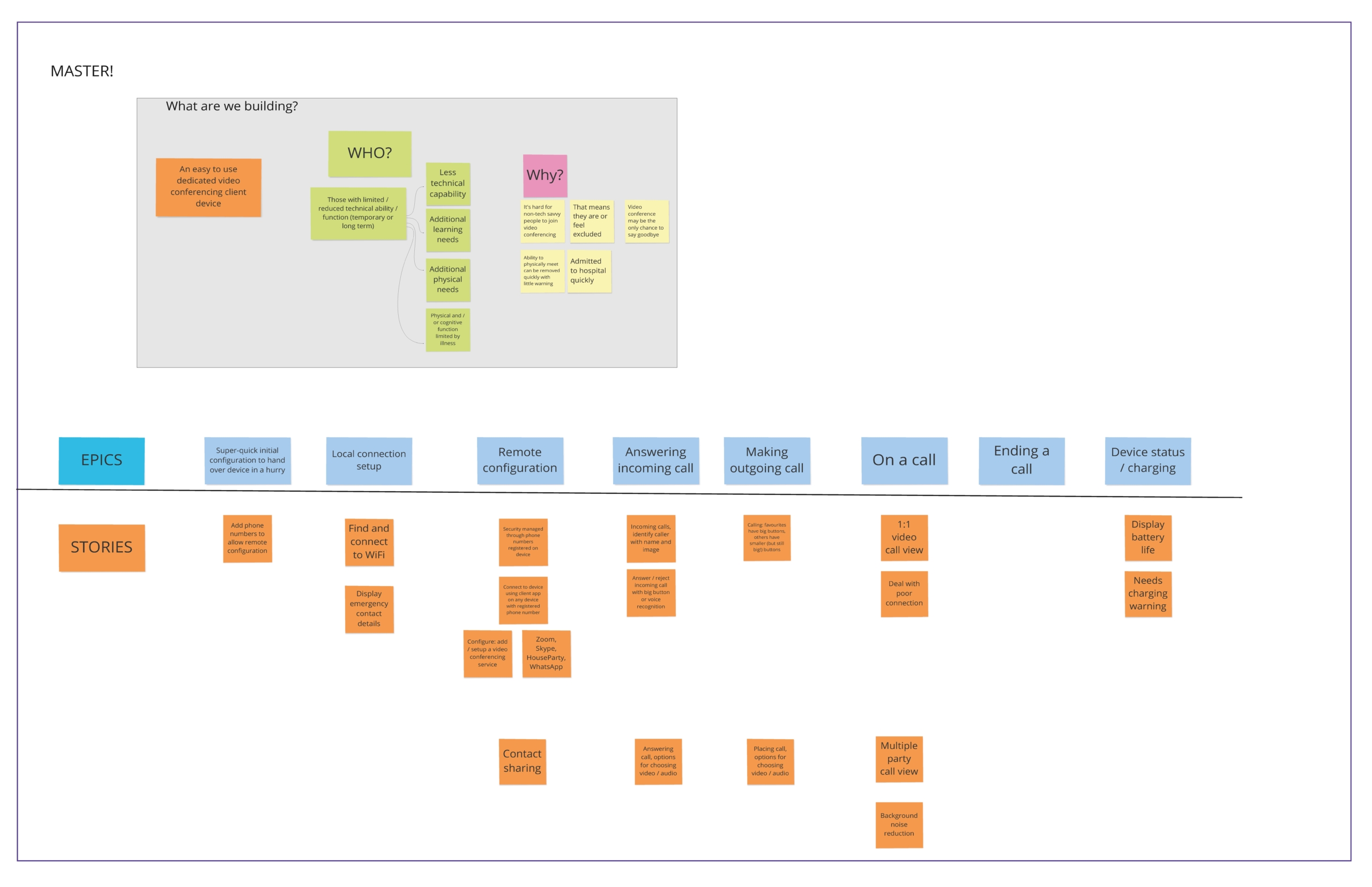 Then when it’s your turn to speak and explain your ideas and thoughts, you explain your story as clearly as possible. This is where filming on a camera (or using the record function on a platform like Zoom) comes into play. Tell your story, walk people through it.10 Doing this also helps you to consider the user journey and where this story fits in that.