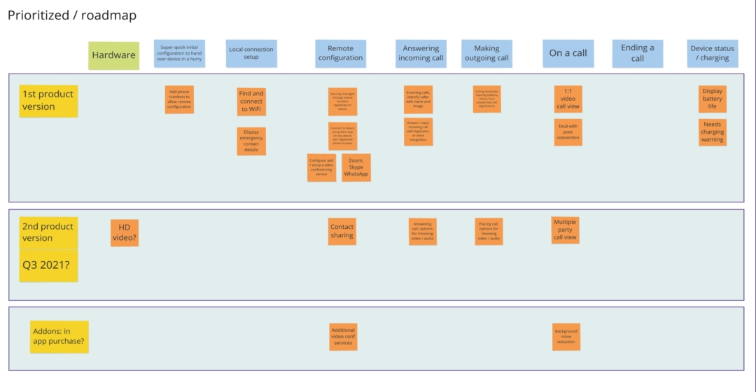 Eventually, it’s time to map stories to some prioritisation, creating a road map that shows a potential journey through development. Through mapping out the stories you can build a picture, through discussion, of the kinds of outcomes that matter for end users and the organisation. And come to understand how long it would take to realise these stories and which are really the bare minimum.